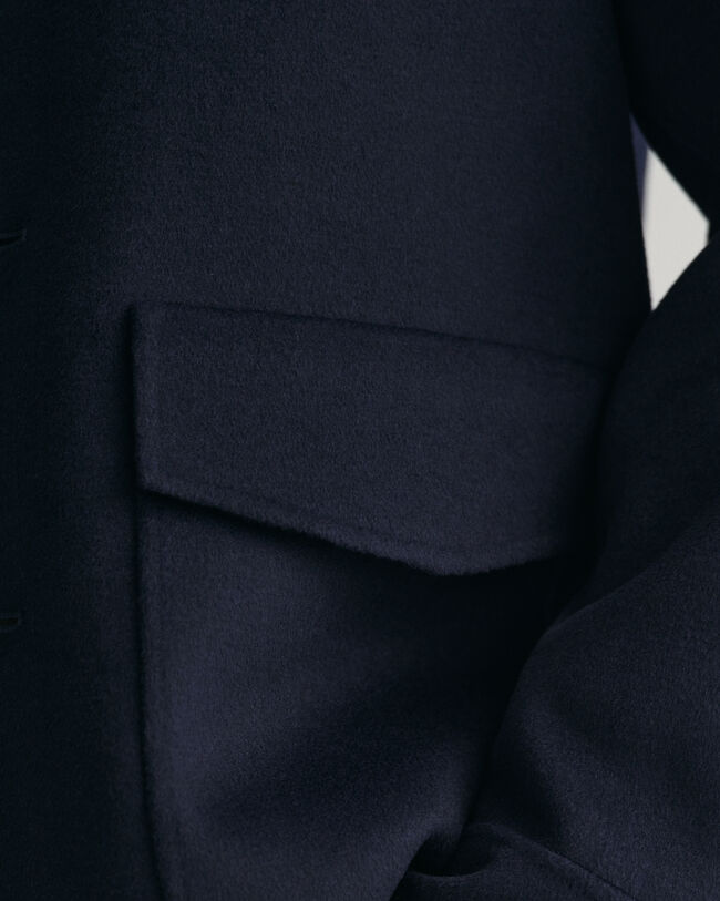 Crafted in a premium wool blend with a touch of cashmere, this jacket features a double-faced, handstitched construction with split seams for an unconstructed look. Cut for a regular fit that sits at the hips, this jacket is detailed with four patch pockets at the front for a nod to utility design.