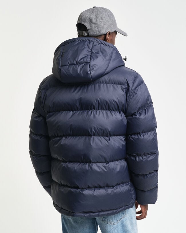 The perfect jacket for days outdoors, the Active Cloud Jacket is hip length, designed for a regular fit and treated with a water-repellent finish. It's constructed with a puffer jacket design and features a fully lined padded interior, detachable hood and slanted side zip pockets. It's also fashioned with a sleek front zip closure, storm cuffs and a silicone GANT badge at the chest. This jacket features a Durable Water Repellent (DWR) treatment which will help to shed water in light weather conditions. If you're unexpectedly caught in a downpour, please follow the care instructions closely to restore the performance and prolong the life of this garment.