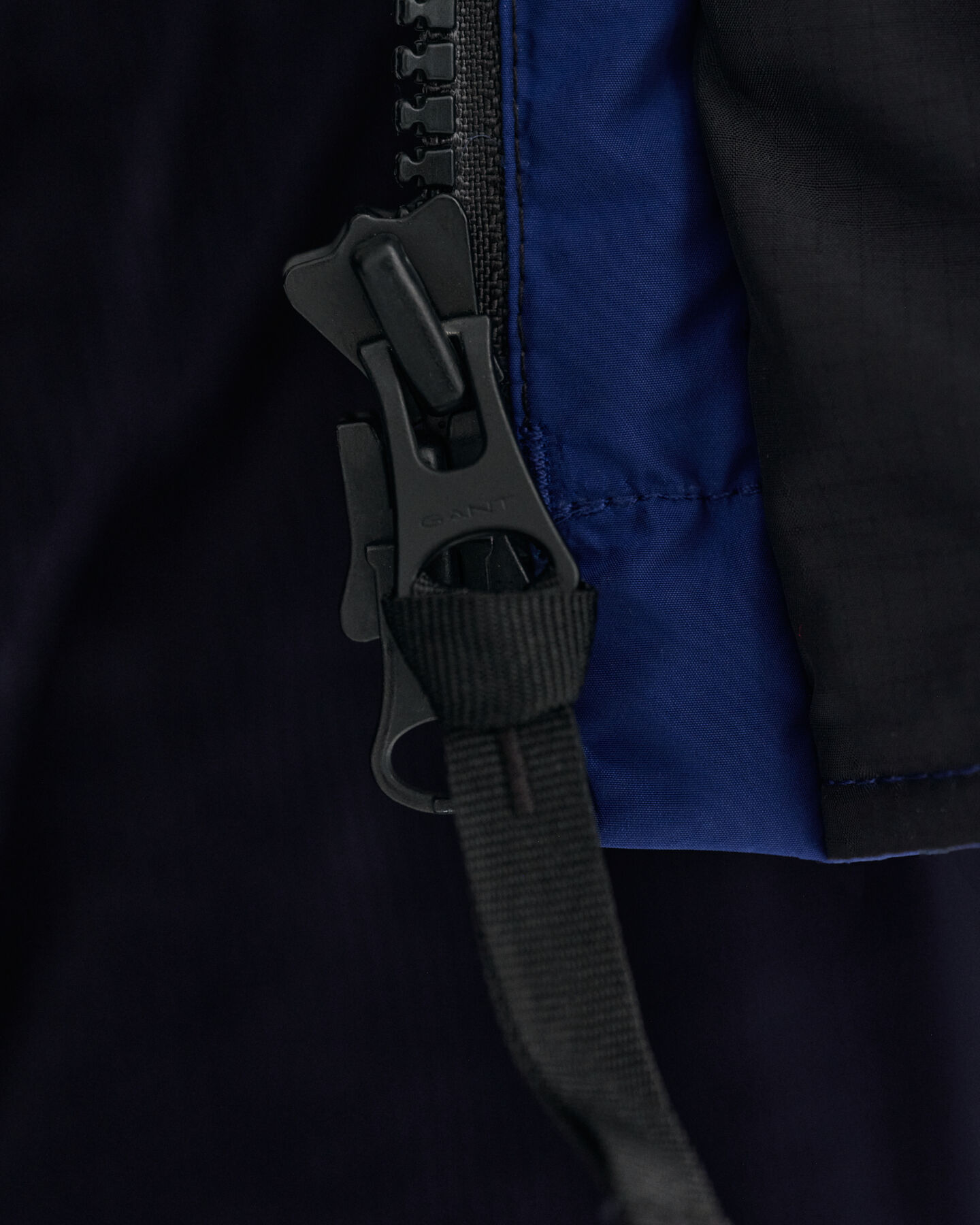 A sporty contrast color jacket with considered functionality, this piece is designed to protect you against the colder elements. Designed with recycled padding and a water-repellent finish on the exterior, this jacket features an adjustable cord at the bottom hem and elastic sleeve cuffs to keep the cold out. Further details include a contrast colored collar, front zip and hidden push buttons closure, welt zip pockets, one interior pocket, subtle GANT branding printed at the chest and our signature locker loop at the back.