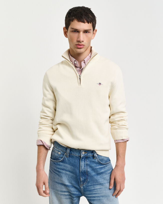 Crafted in medium-weight cotton and cut in a regular fit, this half-zip sweater features a GANT shield graphic embroidered at the chest. This sweater is the perfect layering piece for all season long.
