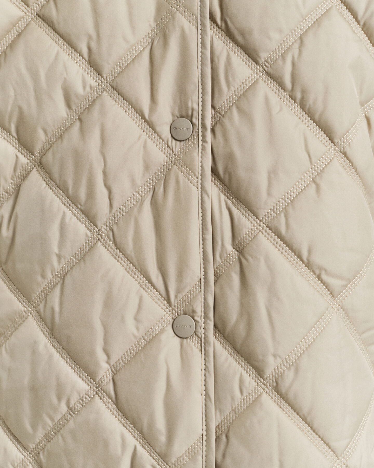 Designed to be worn all throughout the season, this quilted jacket is cut for a classic regular fit and finishes right above the hips. Treated with a water-repellent finish, the design is lightly padded and features a spread collar, welt pockets and branded snap button closure at the front.