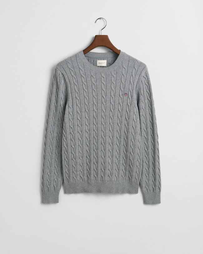 Designed in cotton with an all-over cable knit structure, this soft sweater has a regular fit and classic crew neck. A preppy essential, it is detailed with our iconic GANT Archive shield embroidered at the chest, and ribbed endings at the neck, hem and cuffs.