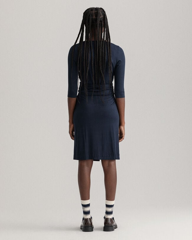 Crafted from 100% silk, this wrap dress is designed with crossover paneling at the upper bodice and a fitted waist with a belt that cuts a flattering and accentuated silhouette. Designed in a regular fit, this dress features side seam pockets and 3/4-length sleeves.