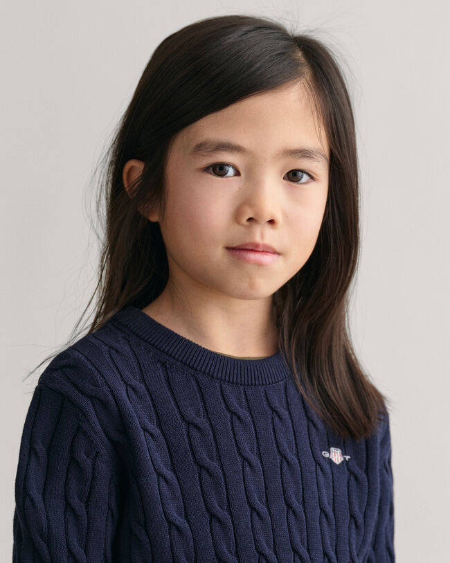 Kids Shield Cotton Cable Knit Crew Neck Sweater