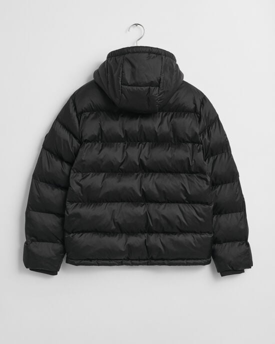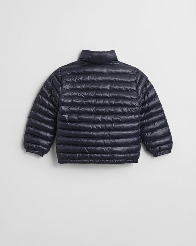 Designed for a sporty look with a shiny effect, this lightweight padded jacket for kids adds warmth without the bulk, courtesy of its light padding. Made for a regular, unisex fit, it features two buttoned pockets, soft elastic at the hem and a zip closure with a protective chin guard. This water-repellent jacket is detailed with a circular rubber GANT logo attached at the sleeve. This jacket features a Durable Water Repellent (DWR) treatment which will help to shed water in light weather conditions. If you’re unexpectedly caught in a downpour, please follow the care instructions closely to restore the performance and prolong the life of this garment.