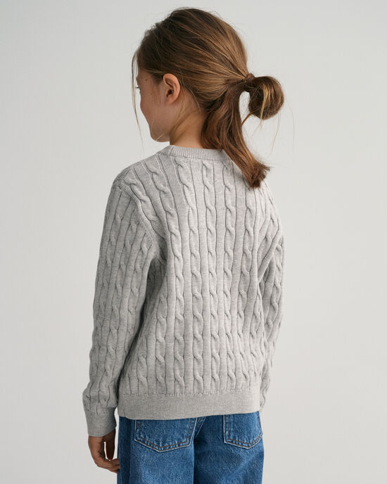 Kids Shield Cotton Cable Knit Crew Neck Sweater