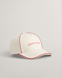 This 100% cotton cap is a sporty and varsity-inspired addition to your accessories collection. Designed in a high-top, five-panel construction, this cap features contrast leather piping and a faded GANT graphic printed at the front. It is complete with an adjustable strap and a GANT engraved buckle at the back.