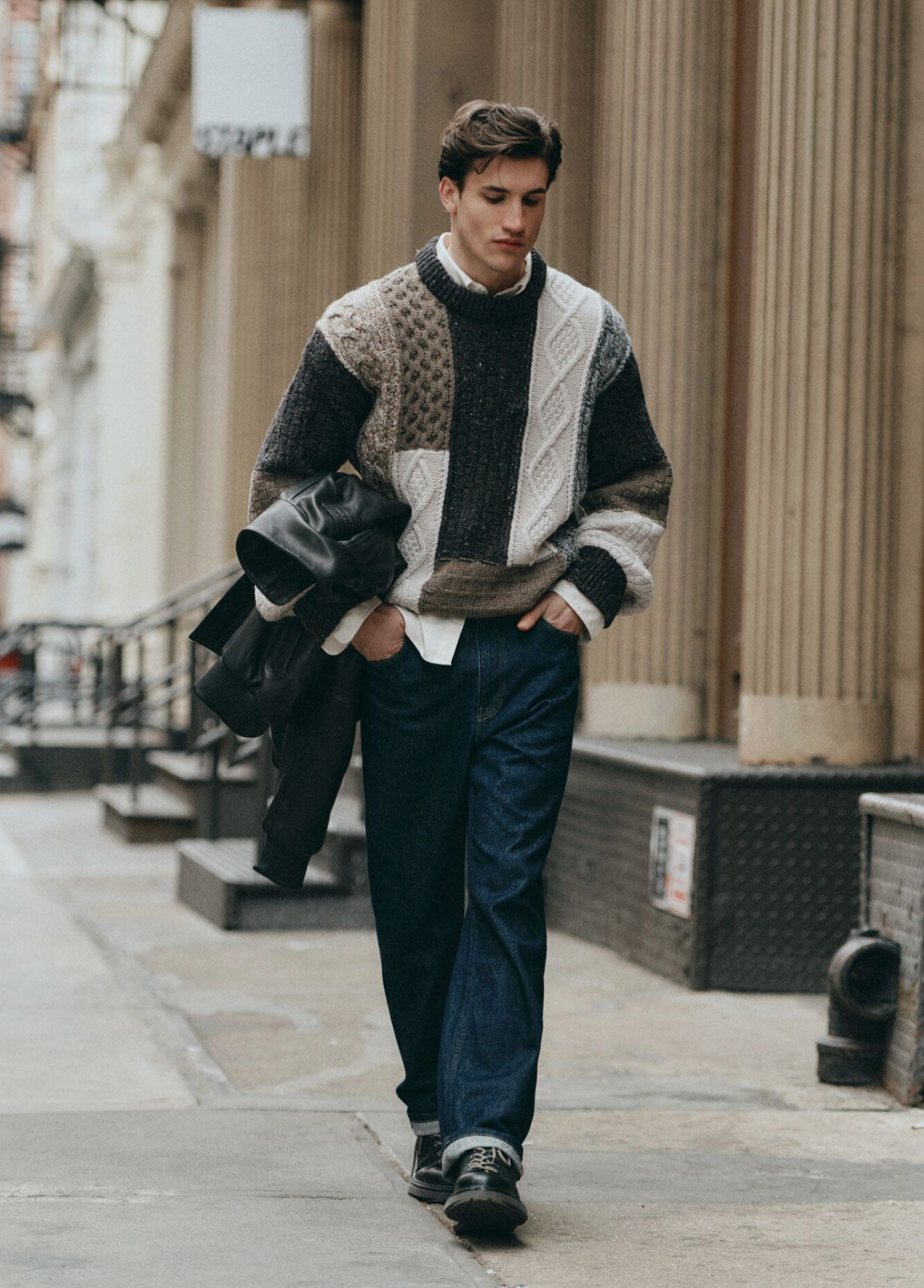 Ribbed Cotton Merino Wool Half-Zip Sweater