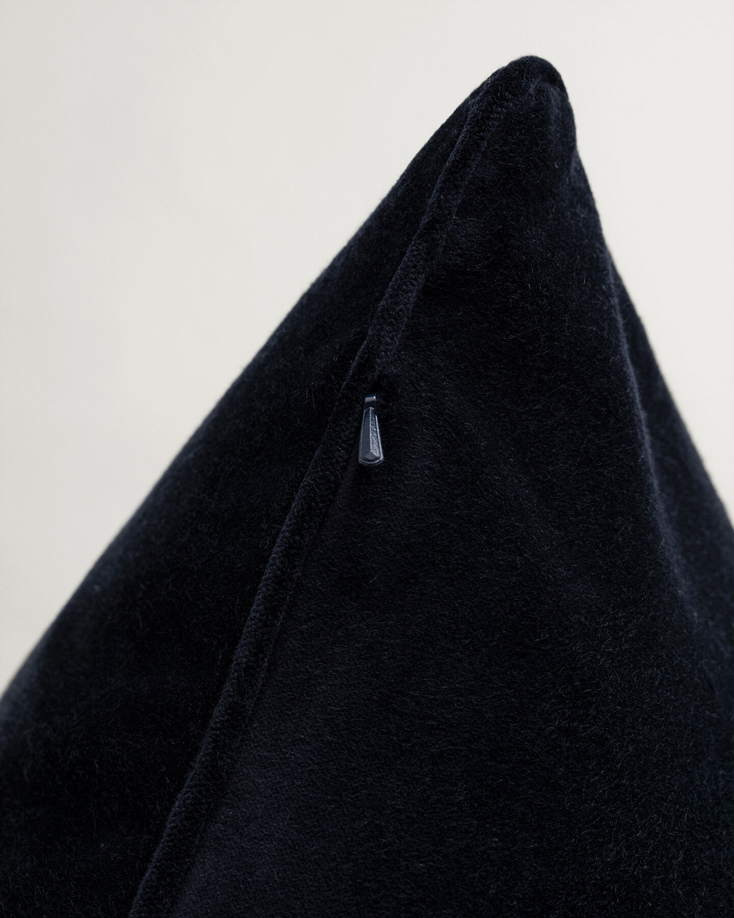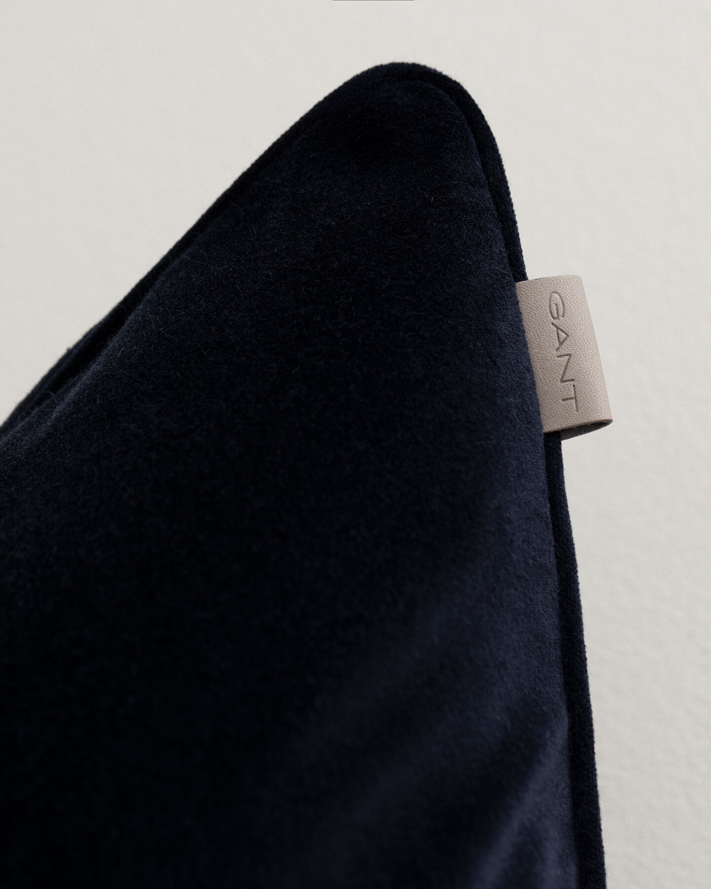 A classic velvet cushion featuring a contrast monogram embroidery on a rectangular design with a hidden zip closure and a GANT leather logo wing. Inner cushion not included.