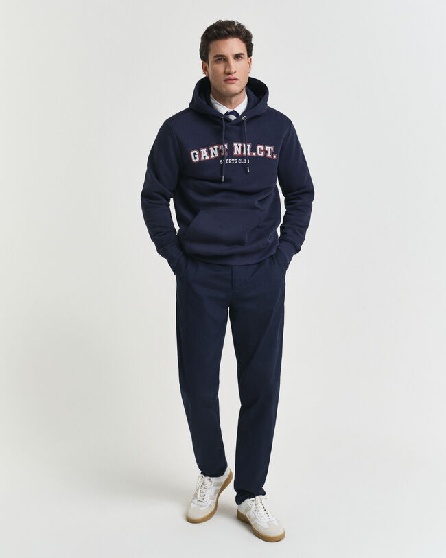 Designed with a breathable, wicking power, this signature chino features a mid-rise waist and a fit that's slim over the hips and regular from the knee down to the leg. With a sleek, streamlined look, these chinos are a modern take on a beloved preppy icon. Details include a buttoned front, slanted front pockets, belt loops and a GANT label on the back pocket. Perfect for your most active days, they will keep you cool, dry, and comfortable.