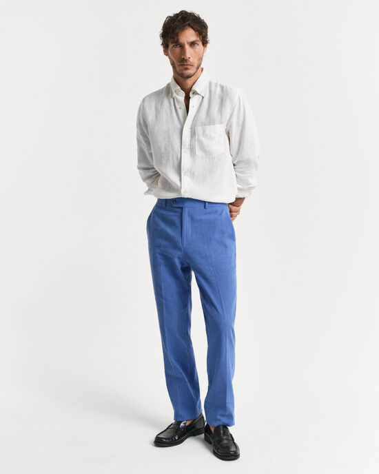 Crafted from a lightweight cotton canvas fabrication with a peached finish for a smoother touch, these chinos are an essential for everyday styling. Designed with a regular fit, mid-rise waist and tapered leg, the design features an extended waistband with button closure, zip fly closure and slanted front pockets. Detailed with an adjustable tab at the waist, the chinos are complete with back button-through flap pockets and imitation horn buttons.