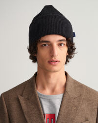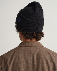 A winter essential, this beanie is made of a rib knit and features turn-up styling with a GANT flag label at the side.