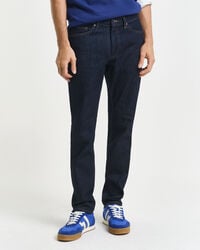 Crafted in a cotton blend with a hint of stretch, these mid-rise jeans are cut in a slim fit for a contemporary style. Pre-washed for a worn-in feel, they feature branded shank button and rivets, a zip fly and a leather logo patch at the back waistband.