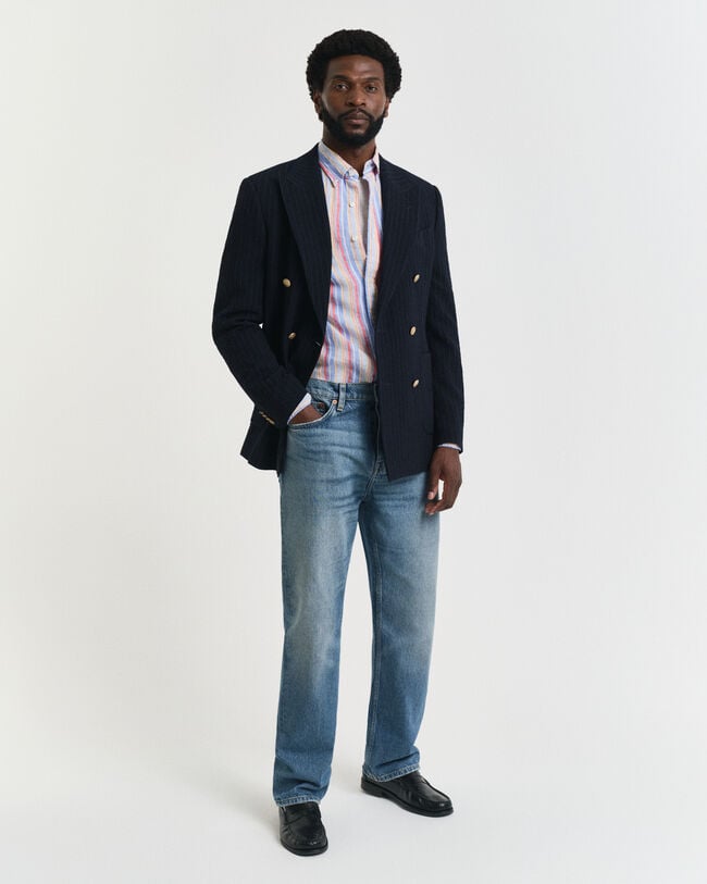 An essential for any season, these jeans are crafted with a straight fit, mid-rise waist and a slight taper in the leg below the knees. Featuring a vintage-style wash for an authentic look and feel, the jeans are detailed with a 5-pocket design, branded shank buttons, a zip fly and a leather logo patch at the back.