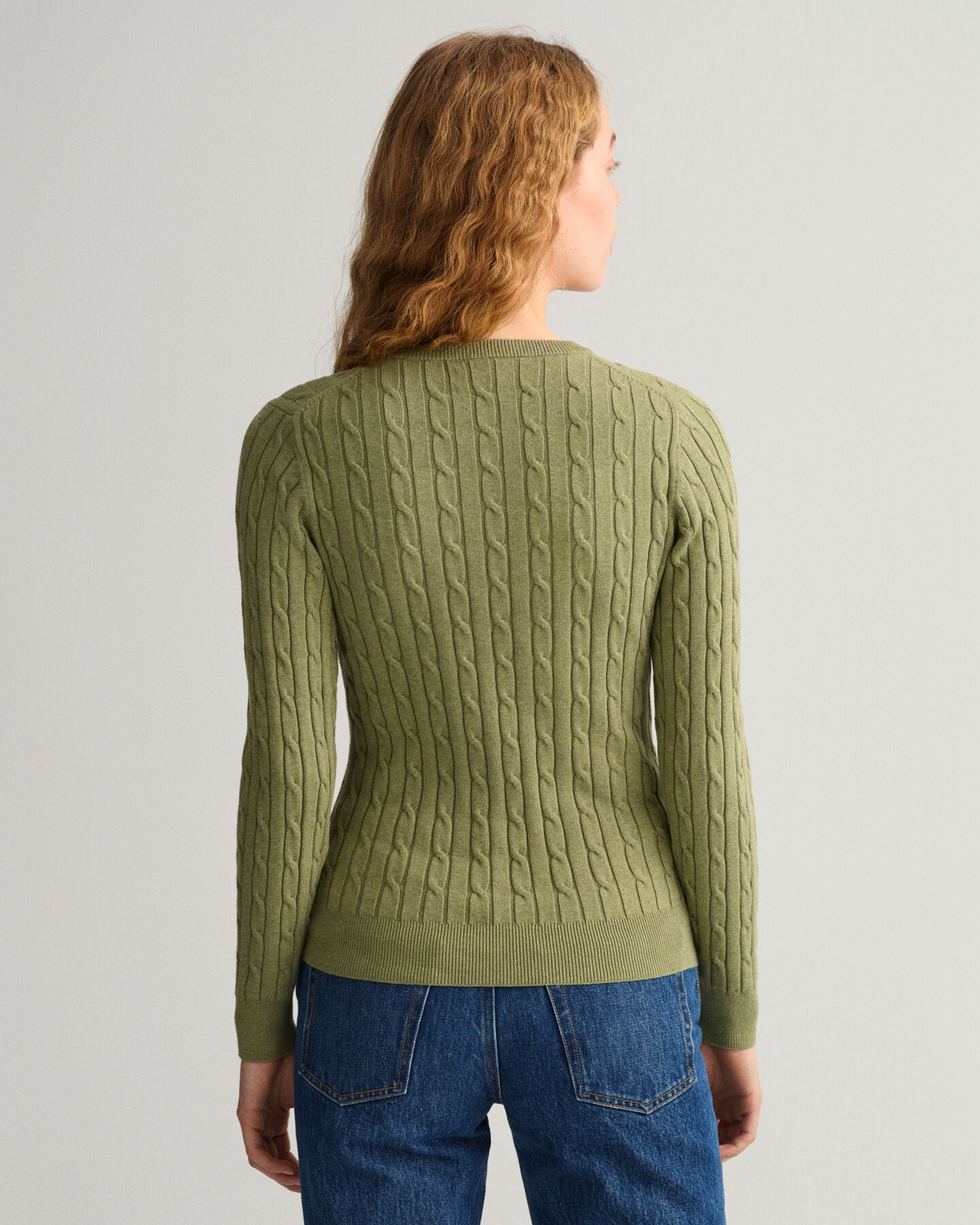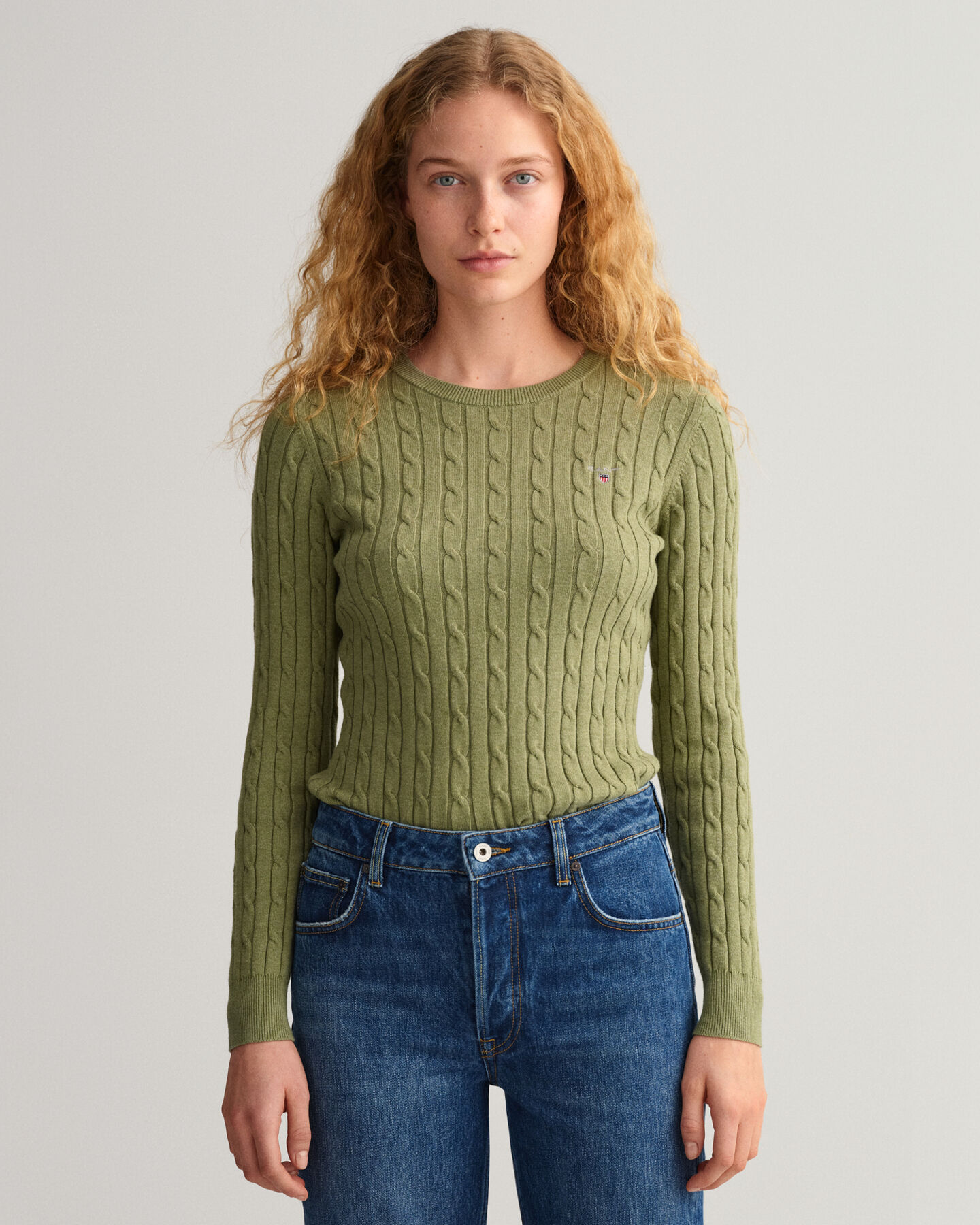 Stretch Cotton Cable Crew Neck Sweater
