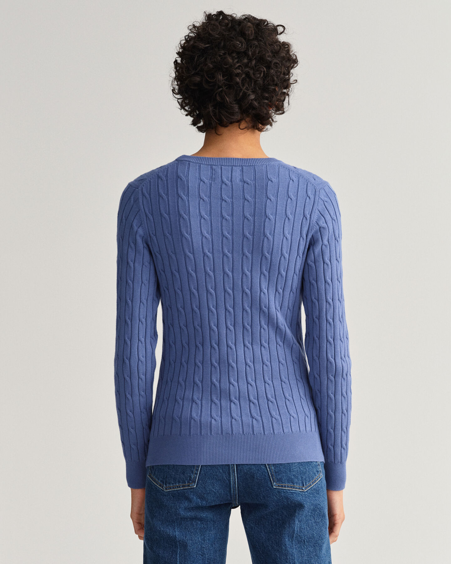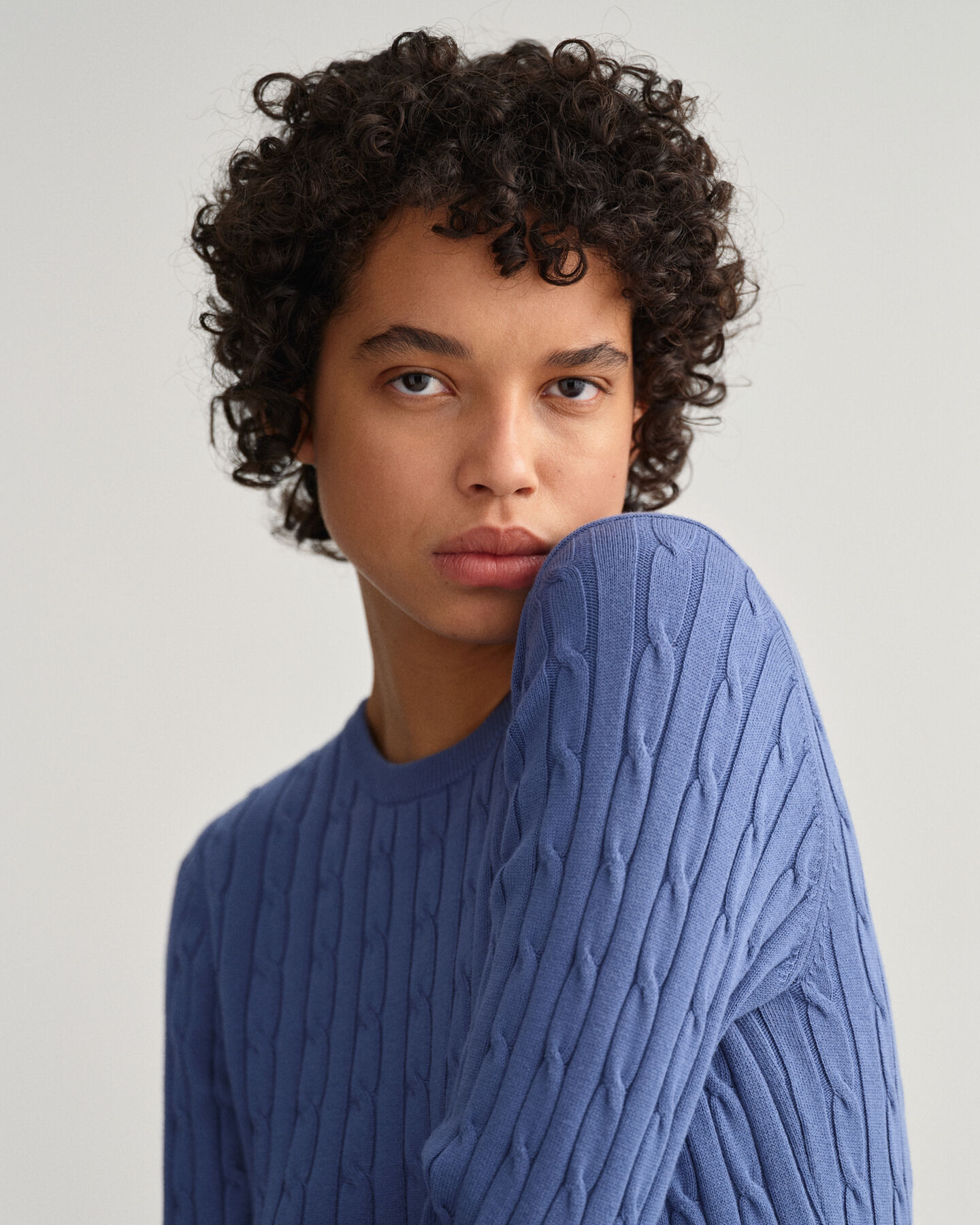 Stretch Cotton Cable Crew Neck Sweater