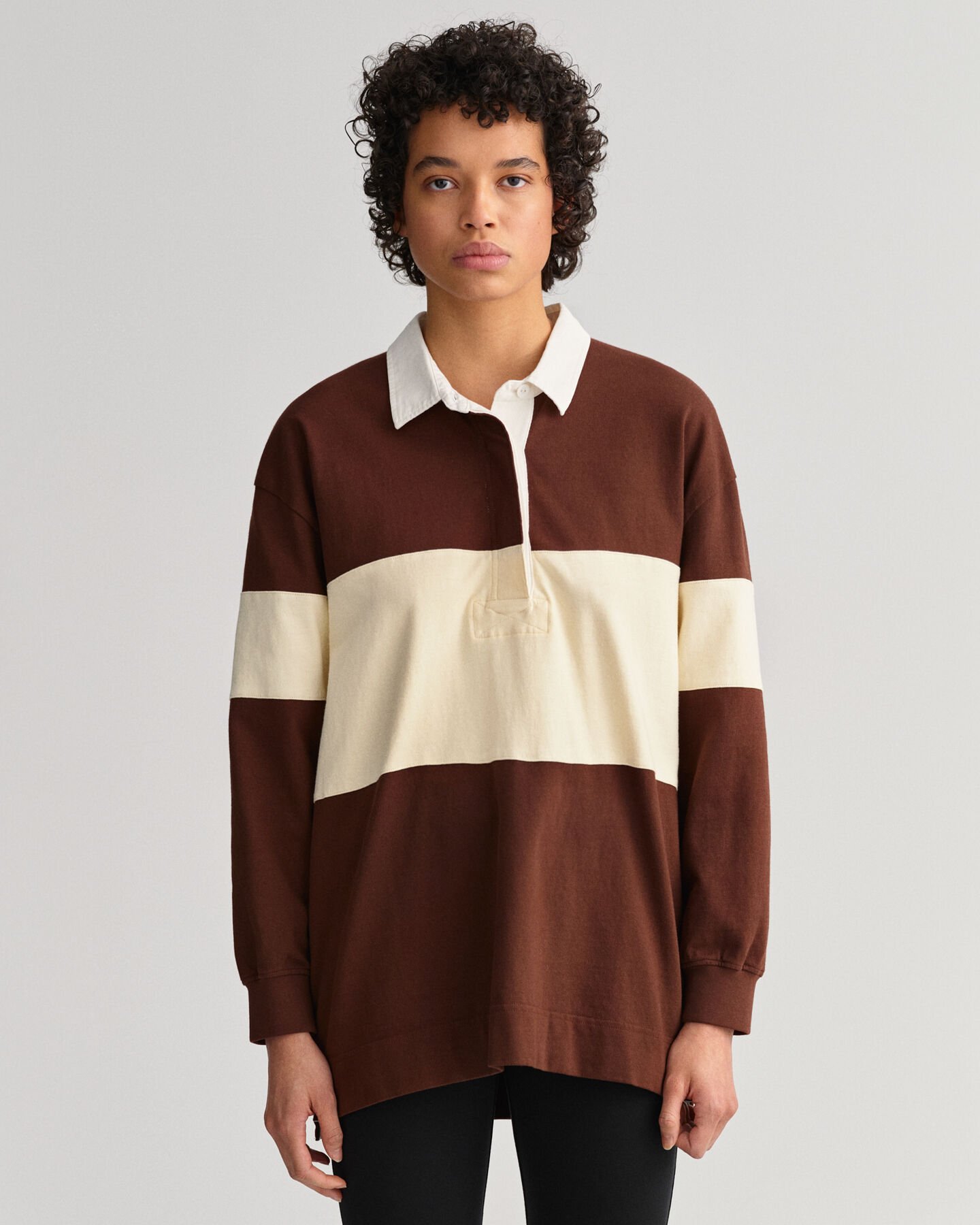 Rugged and relaxed, this season's take on our rugby shirt features an oversized fit in a softer and lighter weight cotton. It bears the same signature rugby-shirt elements we're known for – loud stripes, classic rubber buttons and an authentic heavy rugger collar.