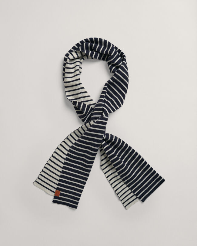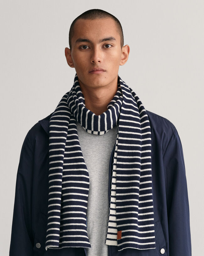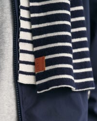 Crafted in a lightweight cotton-wool blend, this scarf features maritime-inspired stripes in new seasonal colors. It is complete with a leather GANT label stitched at the bottom side hem.