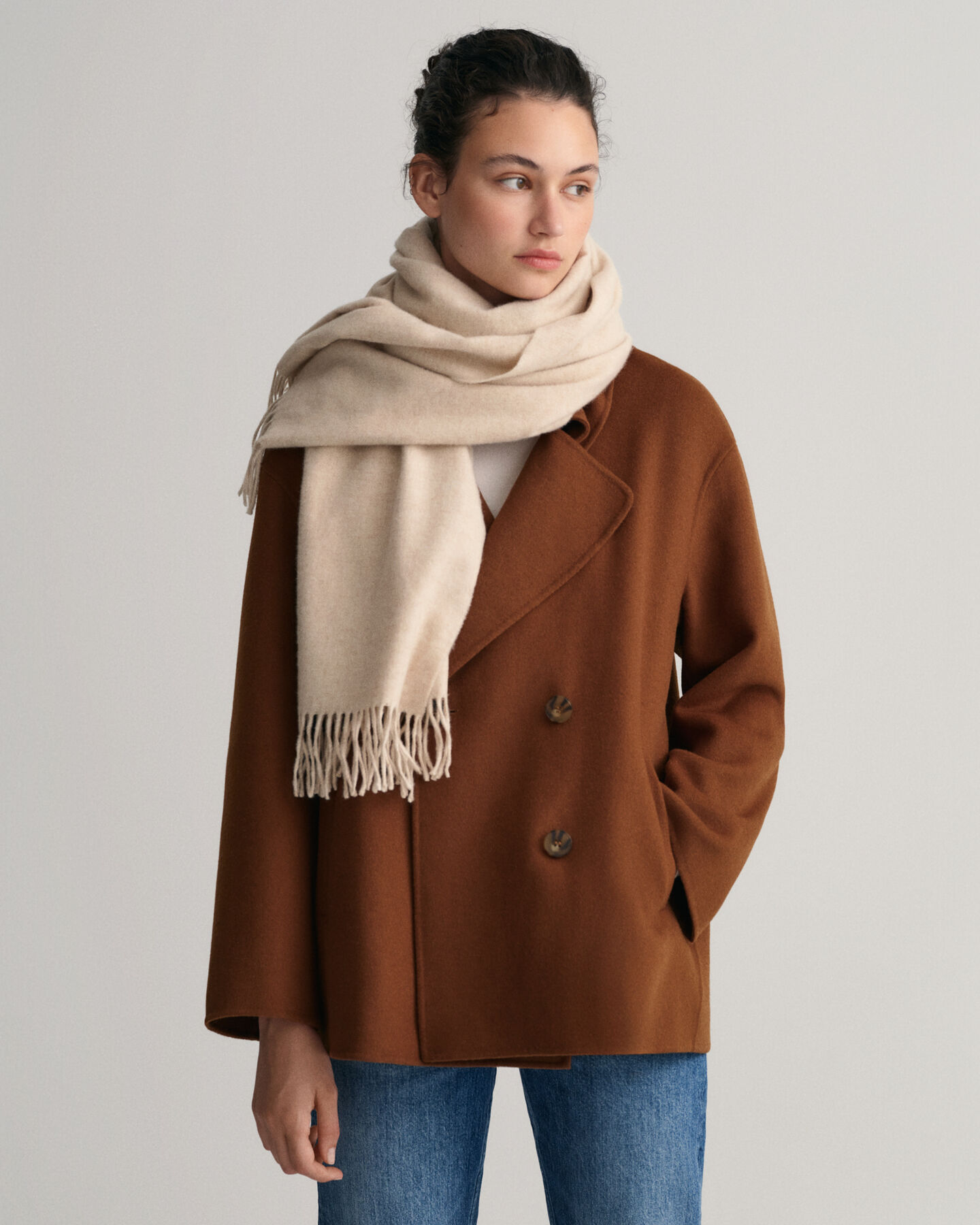 Crafted in extra fine wool with a brushed surface (making it super soft), this scarf in new seasonal colors is a cold weather essential and a natural choice for your everyday wardrobe.